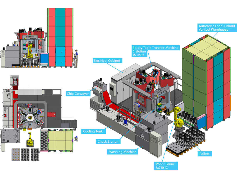 - Numero di stazioni di lavoro: minimo 3 - massimo 8 inclusa stazione di carico/scarico pezzi